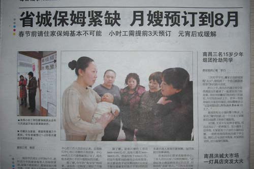 據(jù)了解,每年的這個時候都會出現(xiàn)家政服務(wù)人員緊缺的情況,這主要是由于從事家政服務(wù)大多是流動人口,她們在這個時候都會選擇回家過年。南昌市婦聯(lián)家政服務(wù)中心的工作人員告訴記者,這種用工緊缺的狀況要等到過完元宵才能得到緩解。